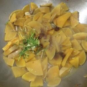 - 加入砍瓜片,翻炒均匀,加入生抽、盐、糖调味,炒至熟透即可。